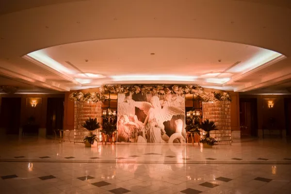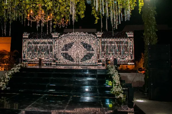 The guest entry is designed in monochromatic colors to suit the taste of the bride and groom. We have a variety of ideas for what the design could contain, such as the initials of the bride and groom's name on a black or silver circle. We try our best to make every detail more beautiful and elegant.