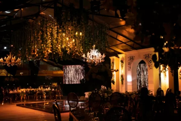 Give the moon and stars some friendly competition with beautiful wedding ceiling decorations.
