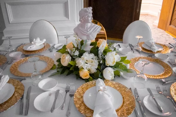 Centerpieces are often not too large, in order to avoid difficulty seeing around the table and to allow dishes to be served easier.